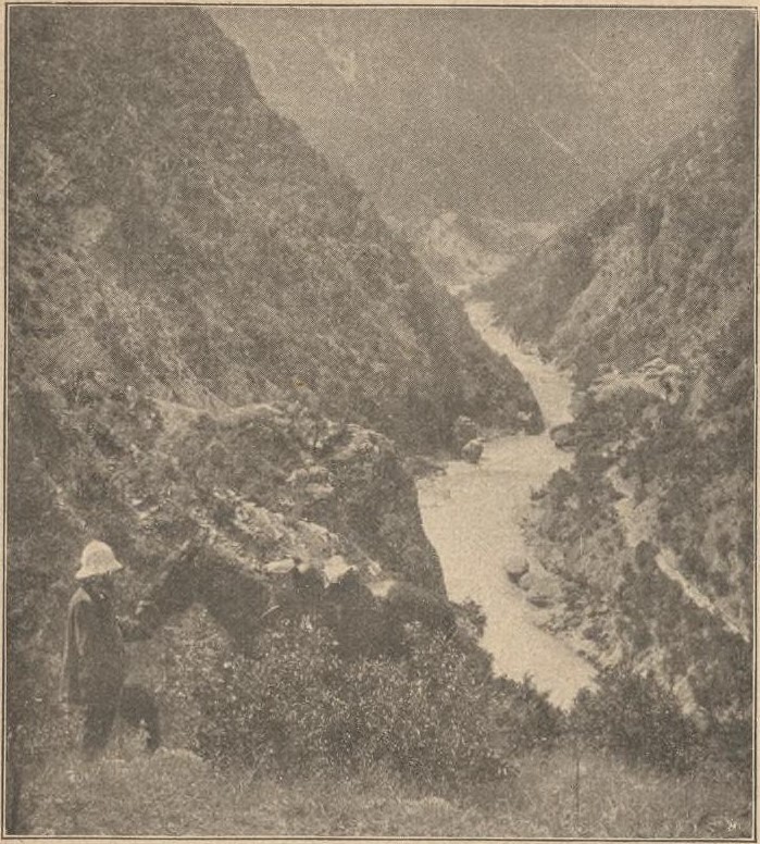 Nehrin yeşilimsi, sarı ve yoğun suları ayaklarımızın altındaki kayaların arasından müthiş bir gürültüyle akıyordu. Sağ kıyıda mantarları andıran tek tek binalar gördük. Bunlar berrak, sıcak bir kaynak üzerine inşa edilmiş meşhur bir kaplıcaya aitmiş. Bu davet boşunaydı. Yazın en sıcak gününü yaşarken bu kaplıca sıcaktan bunalmış yerel rehberimi bile cezbetmedi.