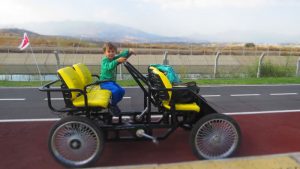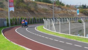 Kalabalık aileler için parkurdaki en uygun seçenek olan velomobillerin bazı modellerinde elektrik desteği de var. Elektrik desteği olmayan modellerde her iki yolcu için en az bir tane idmanlı pedal çeviren bulunması gerektiğini unutmayın. Parkur eğimsiz ve kolay gibi görünse de kendileri yeterince ağır olan velomobilleri yolcularla birlikte uzun süreli hareket ettirmesi hiç de kolay değil. Çukurhisar ve Yedikuyular gibi zirvelere pedal çevirerek defalarca tırmanmama rağmen velomobilde eşim ve oğlumu taşımakta zorlandım açıkçası.