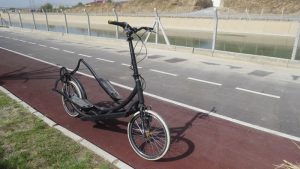 Çevirmeli dairesel pedal yerine koşu bandı tarzında eksantirik pedalları var eliptik bisikletin. Ayaklarınızı bıraktığınız pedallarda koşma hareketi yaparak gücü tekerlere aktarıyorsunuz. Koltuğu bulunmayan eliptik bisiklette sürekli ayakta durmanız gerekiyor. Bu yönüyle sürüş sırasında manzarayı yüksekten daha geniş açısıyla seyretme imkanı sunuyor. Bisikletin sıradışı tasarımı ilk bakışta yatay bisiklete göre daha ürkütücü görünse de sürerken hiç zorlanmadım. Kaykay gibi tek ayağımla hızlanarak çıktığım bisikleti ilk denemede sürmeyi başardım. Bu bisikleti de parkurda bulunduğum sırada benden başka kullanan görmedim. Mutlaka denemeniz lazım.