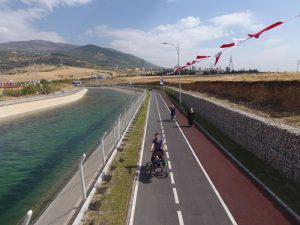 Haftasonu kalabalığı, tüm Kahramanmaraş’ın iki teker üstüne çıkmak için bu yolu beklediği hissini uyandırıyor. Kanal boyunca görüş açısını engelleyen keskin virajlar var. Önünüzdeki kişiyi sollarken karşınızdan bir başka bisikletlinin gelebileceğini unutmayın. Özellikle akülü bisikletlerin ani hızlanmasına ilk binişte düzlüklerde ve kalabalığın az olduğu anlarda kendinizi alıştırın.