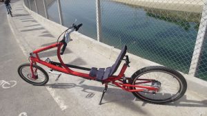İnsan vücuduna uygun ergonomik tasarıma sahip bu bisikletlerin, omurgayı yormayacak şekilde tasarlanan sırt dayanağı olan koltuğu, klasik bisikletlere göre yere daha yakın. Yatay bisikleti kullanmak için arkanıza yaslanıp sırtınızdan aldığınız kuvvetle ön tekere yakın ve koltukla aynı yükseklikte olan pedalları çevirmeniz gerekiyor. Normal bisikletlerden uzun olması ve direksiyonunun sağa-sola değil de aşağı-yukarı yönde hareket etmesi nedeniyle dengede durmakta zorlanabilirsiniz. Bazılarında çocuk bisiklerinde olduğu gibi arkaya denge tekerleri monte edilmiş. Denge tekeri olmayanı seçip birkaç dakikalık deneme ile sürmeyi başardım. Sürmeyi başarsam da ani manevralarda dengeyi koruması zor olduğu ve dar parkurda şerit ihlali yapanların bulunması nedeniyle herhangi bir kazaya sebebiyet vermemek için hızlanmaya cesaret edemedim. Parkurda bulunduğum pazar günü kalabalıkta benden başka yatay bisiklet deneyeni görmedim.